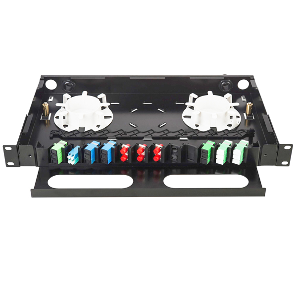 The 12 port universal type optical fiber box can realize the functions of the termination, fusion of the optical cable, the fixing and grounding of the optical cable, as well as the protection of the optical core and pigtail. It can be installed in a standard 19” cabinet. Compatible with the flexible loading and unloading of various adapters such as ST, SC, FC, LC, MTRJ and MPO/MTP. It provides fiber splicing and distribution function inside, and sufficient fiber winding space to ensure the bending of the optical cable. Product structure Simple and easy to use.
